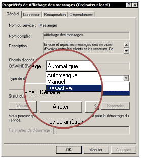 L'option activer permet de revenir a l'état initial.Pour en savoir un peu plus sur les spams services windows : Cette pratique est baptisée "Messenger spam" parce qu'elle utilise ce que Microsoft appelle le "service d'affichage des messages de Windows", en anglais "Windows Messenger". Attention, il s'agit de ne pas confondre le Windows Messenger avec le désormais très utilisé MSN Messenger, l'outil Microsoft de conversation en ligne. Le Windows Messenger ou service d'affichage de message est un service de Windows (Il est installé en même temps que le système d'exploitation, en versions NT4, 2000 et XP) qui permet aux administrateurs de réseaux d'envoyer des messages sur les postes clients. Autrement dit, cette pratique n'est absolument pas liée au fait que vous utilisiez ou non MSN Messenger pour discuter en ligne avec vos amis.